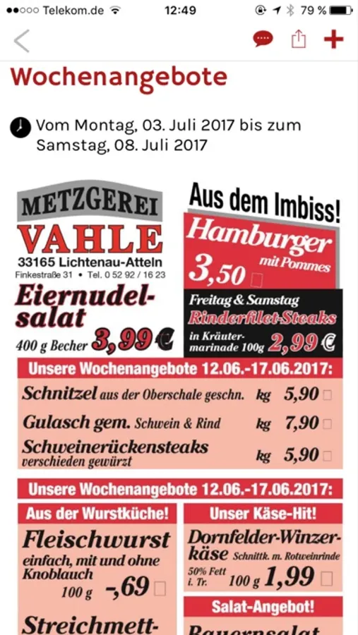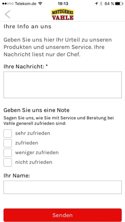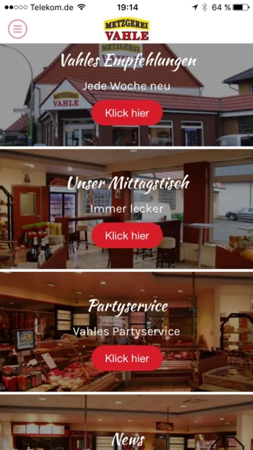 Liebe Kunden, hier finden Sie immer unsere Empfehlungen, aktuelle Wochenangebote und den Menüplan für den Mittagstisch. Wenn Sie Push Nachrichten zulassen, werden Sie auf diesem Wege auch hin und wieder Mitteilungen von uns erhalten. Wir freuen uns über Ihre Rückmeldungen, Wünsche und Bewertungen, die Sie als "Nachricht an den Chef" übermitteln können.