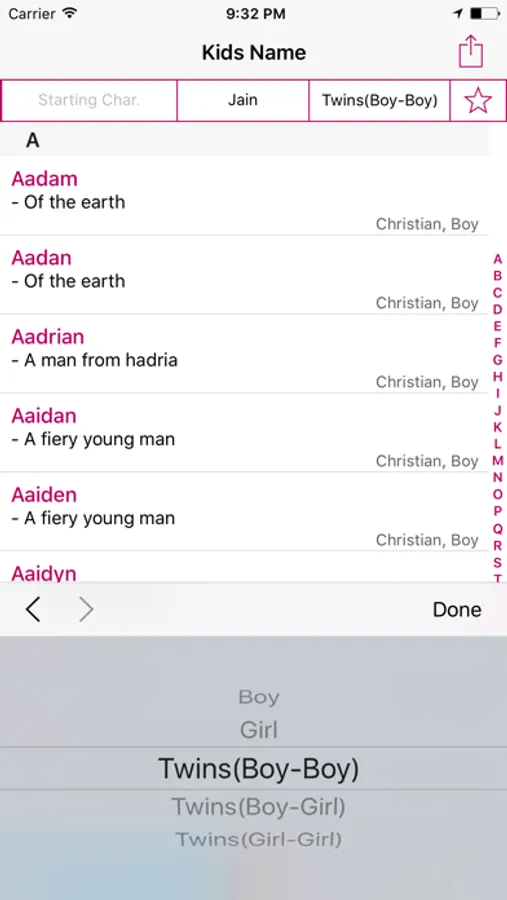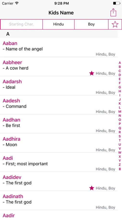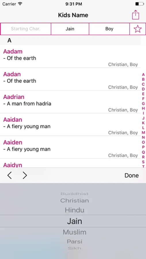 - Name meanings and religion like Buddhist, Christian, Hindu, Jain, Muslim, Parsi, Sikh etc.