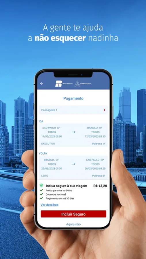 - Bilhete eletrônico no seu celular, sem precisar imprimir e sem filas nos guichês;