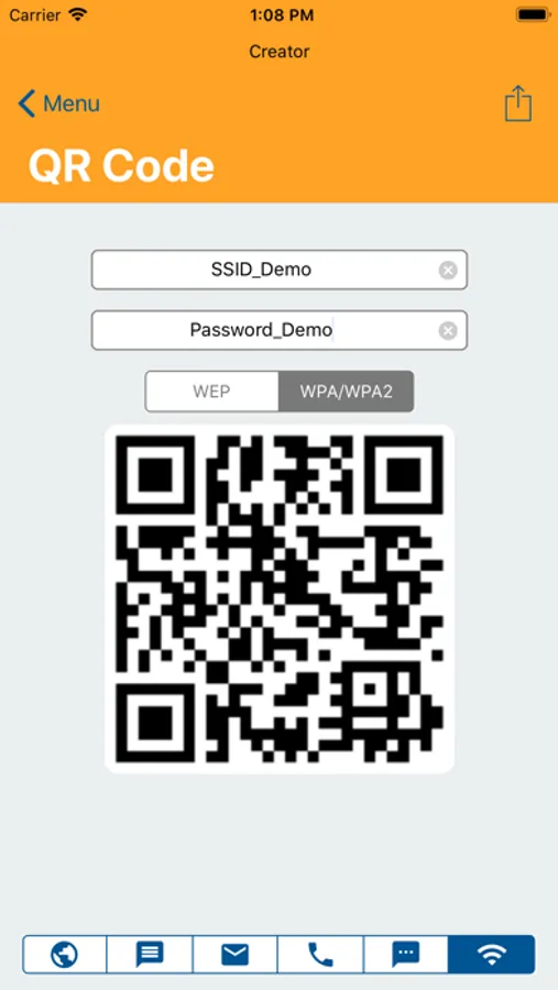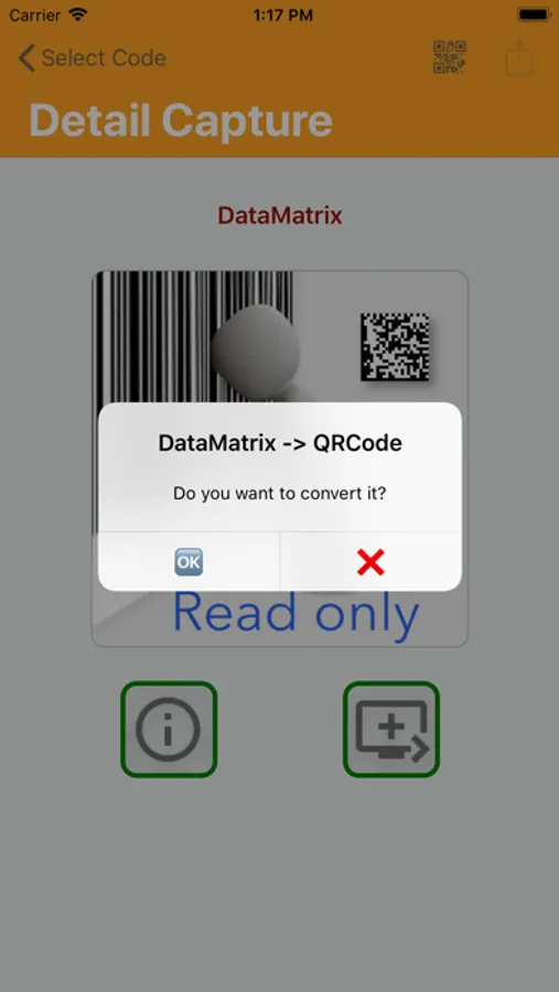 You will also be able to share the code image and sometimes its data by email, Notes, Messages or any installed application which supports information collecting.