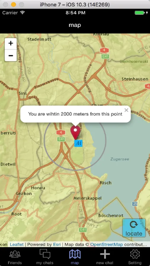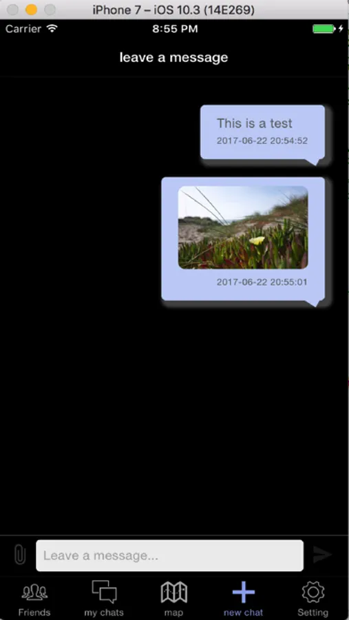 You can leave a message at any place you are at it can be found by other users. Once your message was found you can receive an answer and start into a chat with other users.