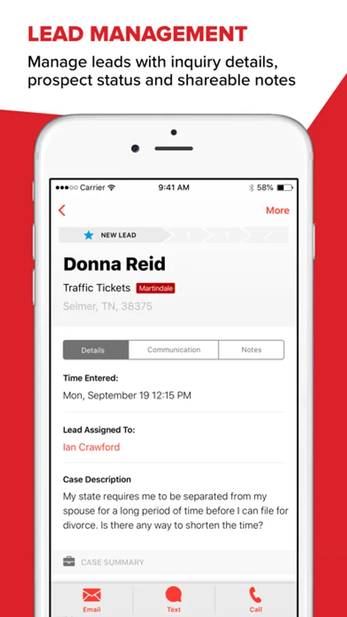 The Martindale Leads Manager App allows you to connect to leads instantly through the help of push notifications, in-app messaging, and more.