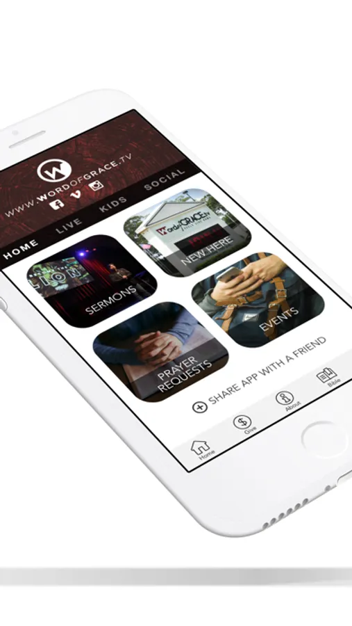 Word of Grace Church in Pineville, LA offers this custom app to provide you with finger-tip access to all of their resources. From watching live services to sermon archives to important events you can get it all here on this creative yet simply designed app layout that users of all ages can enjoy.