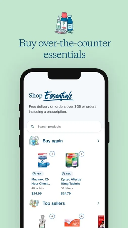Shop the Essentials store in our app to order over-the-counter pharmacy products or add them to your next delivery.