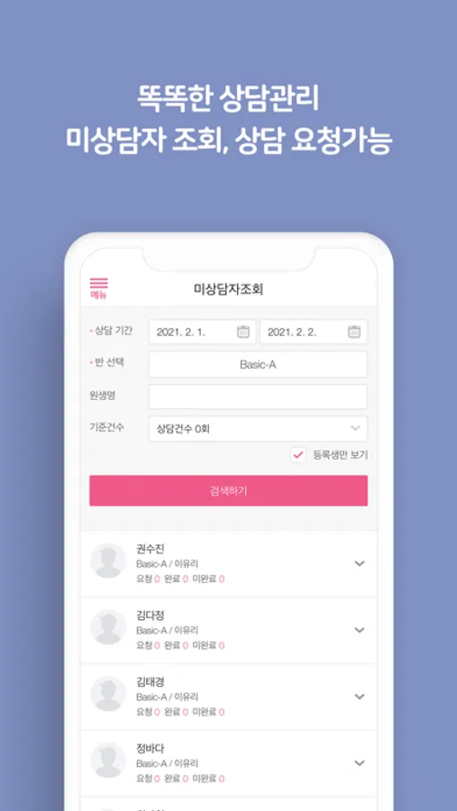 1. 원생 등록/조회, 출결 관리(등·하원 알림), 일일 알림장 기능을 이용하여 효율적인 원생 관리가 가능합니다.