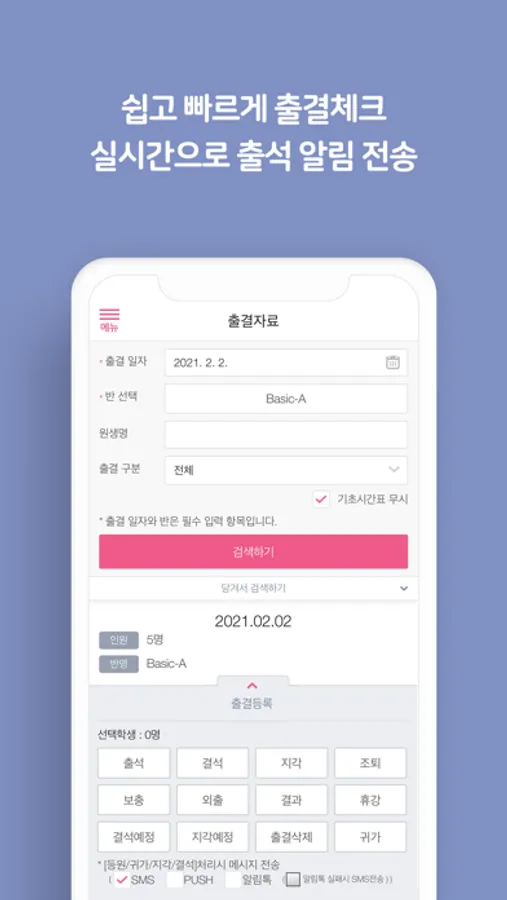 6. 출결과 연동된 방역관리 시스템을 통해 체계적인 방역관리가 가능합니다.