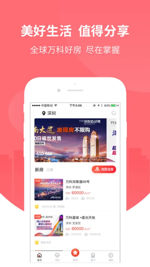【海量房源 由你掌控】全国万科、海外万科好房尽在分享家APP,地图找房,条件筛选找房轻松get好房源~