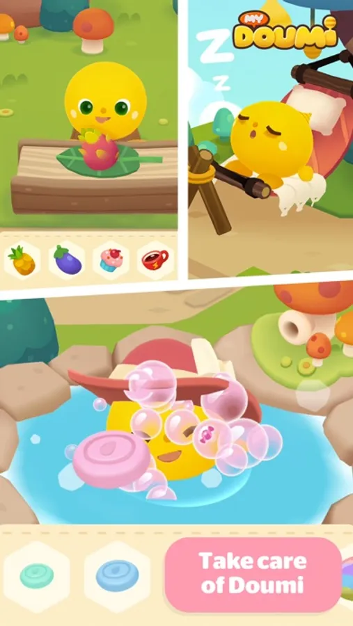 Say hello to Doumi, your new virtual pet! Get ready to play games, dress up, and eat yummy snacks to help keep Doumi happy. Don't forget to let Doumi rest every day so you can watch them grow and change shape, evolving into the perfect pet!