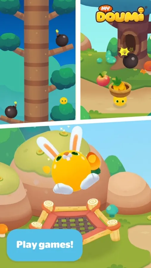 Explore the world of Doumi together and have fun with up to 4 mini-games--Falling Fruit, Tree Jumper and more! Scoring high in games will earn you gold coins to unlock rewards for even more fun.