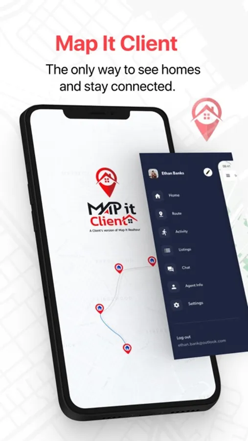 • Home Buyers – They will receive an email invite from their Agent to download Map It Client, where they can sign in, view their assigned and planned route on the map, and see all the details the Realtor shared via the app.