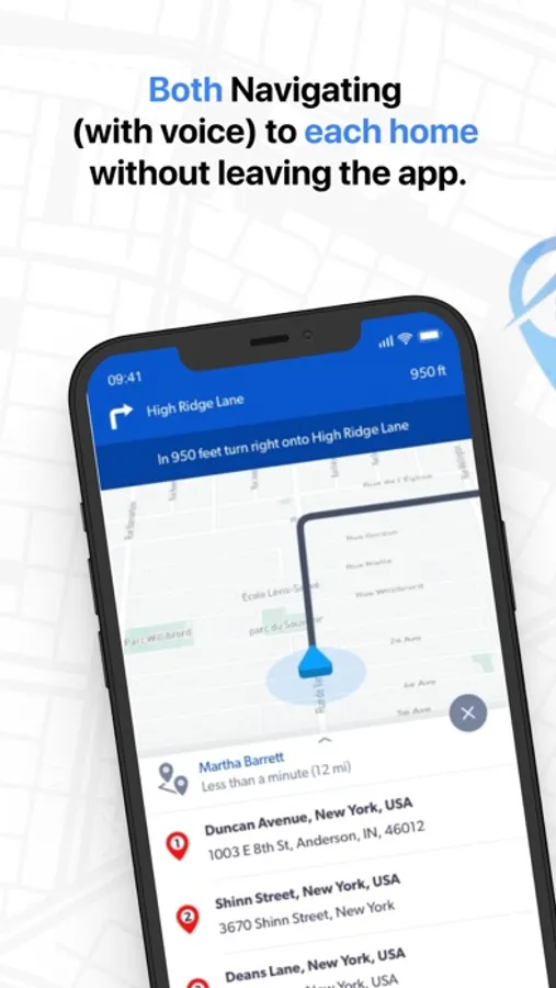 • Navigation – By clicking the Navigate button, the app will navigate both the agent and the buyer to the listing on the route, without having to leave the app to access a standard map. All navigation is done with voice navigating and is kept within the app.