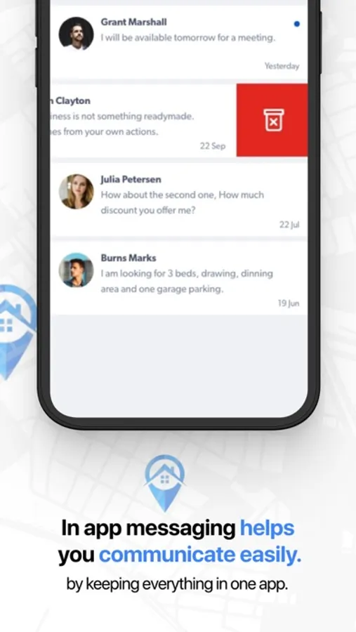 • Communication – The Realtor and the buyer will be able to contact each other inside the app in different formats: by in-app messaging, click to email, click to call, making it easy to communicate and discuss each home.