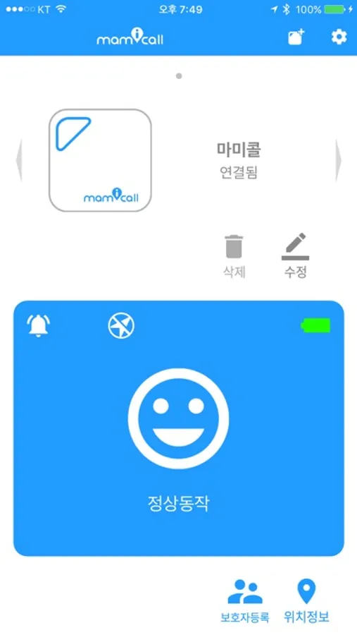 내 아이의 안전지킴이 역할을 수행하는 MamiCall의 기능을 상호연동, 지원하는 어플리케이션 입니다.