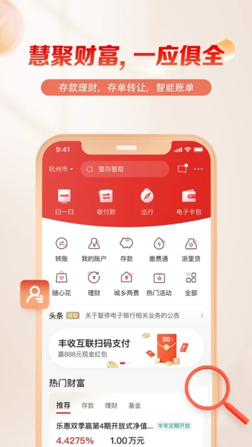 “丰收互联”是浙江农商联合银行基于移动互联网、大数据和人工智能等新一代金融科技打造的“金融+生活”一体化互联网综合服务平台。主要围绕金融服务、财富管理、融资贷款、生活场景、民生服务等,为客户提供7*24小时、跨时空、跨地域的全方位线上金融和生活服务,真正体现践行“手机即银行”和“场景即生活”的数字普惠金融服务理念。