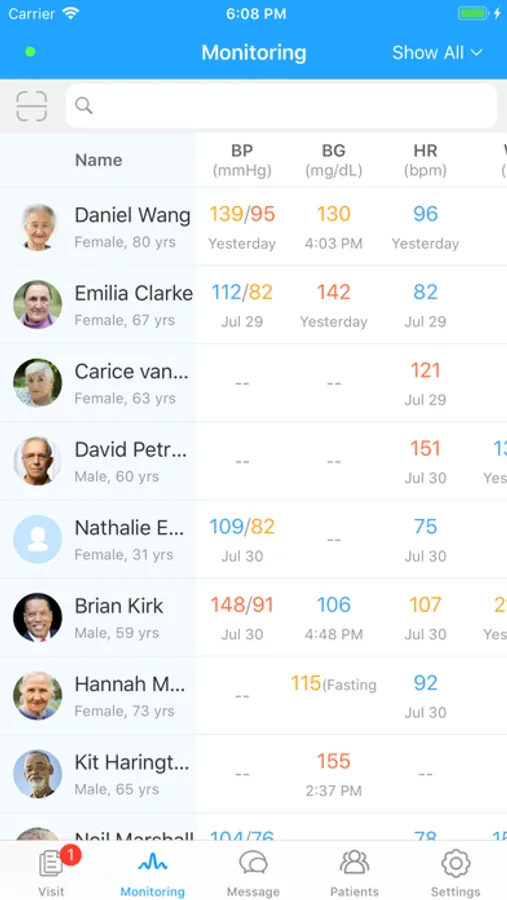 doctorgram MD App is designed to work with doctorgram App. The combination of both App provides vital signs monitoring services to home care patient with connectivity to their assigned healthcare provider. The Apps allow upload of vital sign data from a set of monitoring devices via Bluetooth, which ensure the accuracy of the vital data. The healthcare provider also has the ability to customize monitoring range for the specific patient condition in order to receive appropriate notification.