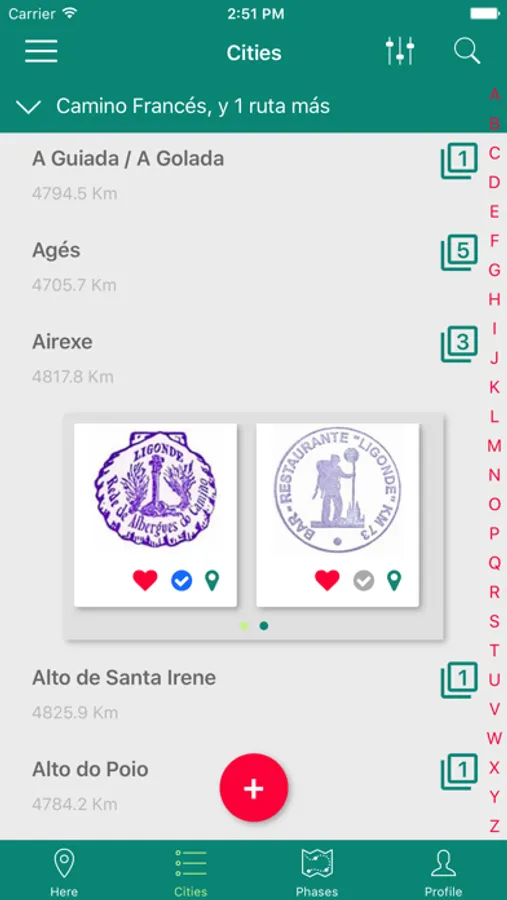 This app geolocates the different stamps that are available on the road, so you can choose the ones you like the most and you can go for them.