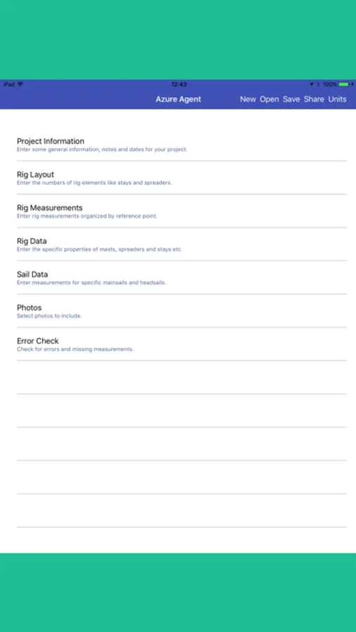 AzureAgent is a support app for the AzureProject sail design suite of tools. It allows the user to enter all measurements from the boat in a clear and intuitive way, following the main measurement points on the boat.