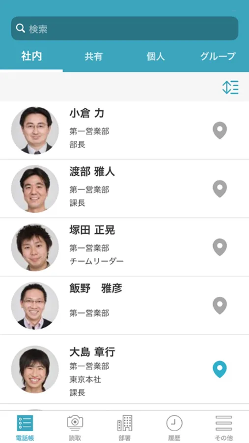 連絡先をクラウドで一元管理し、部署・キーワードから社員を検索し、連絡出来ます。さらに、お客様の名刺情報もいつでも検索し、連絡をとることが可能です。