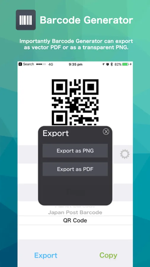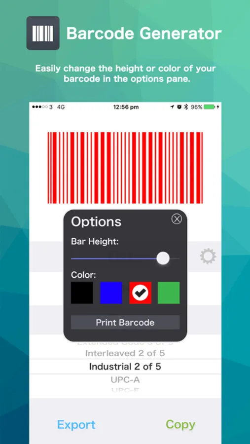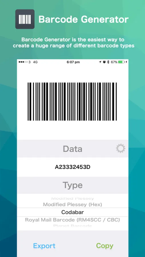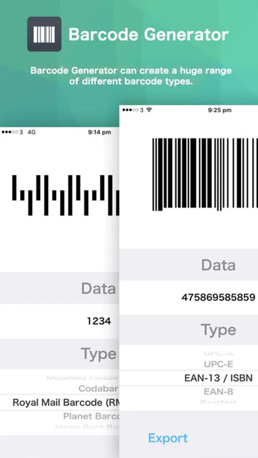 Quickly generate barcodes with the easy to use user interface, preview your barcode before saving. You are then able to copy the barcode to your clipboard or export to your photos or as a PDF.