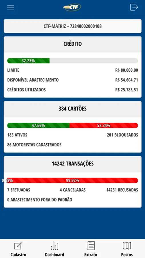 Consulte seu saldo, visualize extratos das transações, localize postos próximos e bloqueie seu cartão em caso de roubo ou perda.