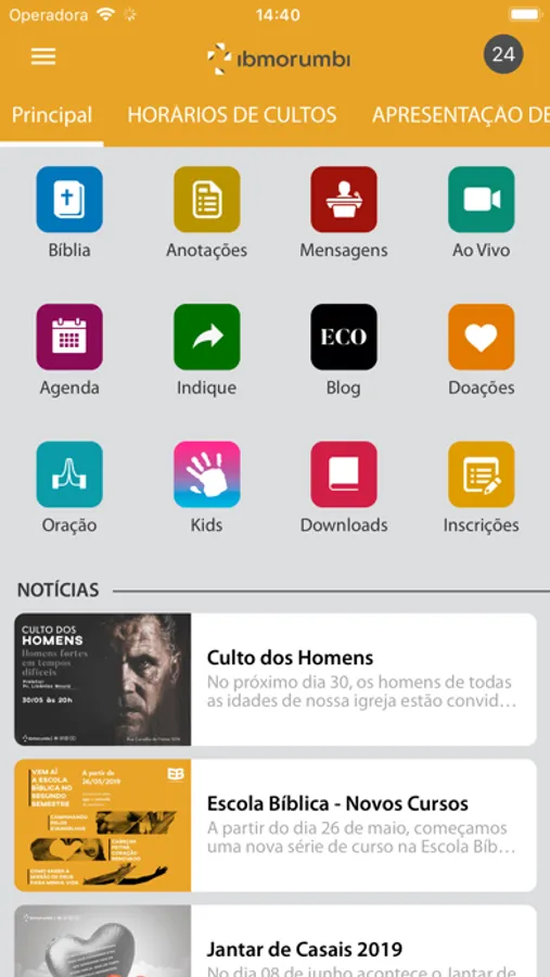 - E mais: notícias da igreja, guia de negócios, entre outros.
