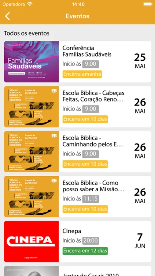 - Siga a agenda e fique por dentro de tudo que acontece na igreja, inscreva-se em eventos e tenha seus ingressos sempre com você.