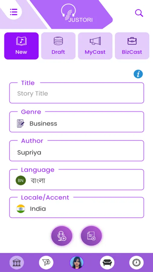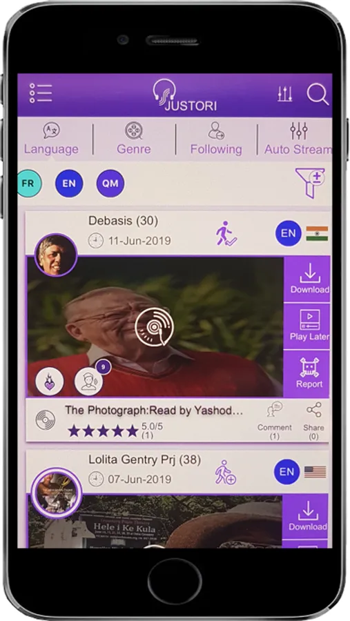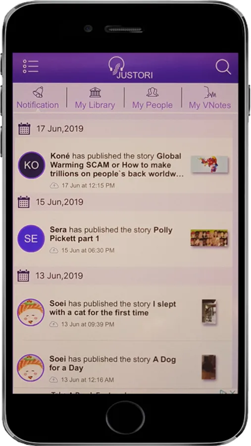 i. We allow our users to either record their stories directly using the features of the device or upload stories from the cloud directories belonging to the users.