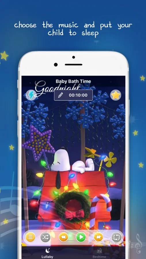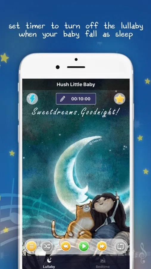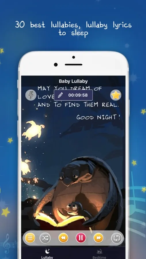 The timer function automatically turns off the application after a specified time, and with the slideshow option application can automatically plays the next lullaby.