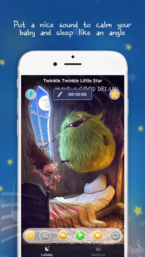 Best lullabies, lullaby lyrics to sleep such as twinkle, twinkle little star, all pretty horses, good night little kid or the gentle sound of waves and chirping birds will make your child regain composure and quickly fall asleep.