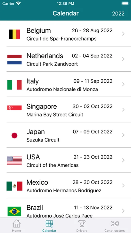 Quickly scroll through the current race calendar, and dive into the results, or countdown to races not yet complete