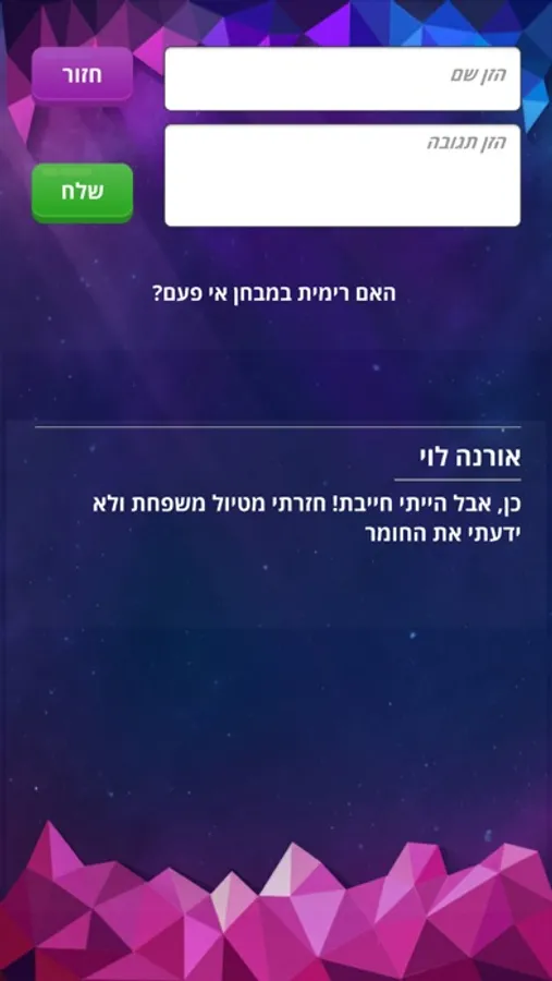 הוספנו מערכת תגובות, שתוכלו להגיב על כל שאלה באופן נפרד ולשוחח עם שאר המשתמשים באפליקציה.