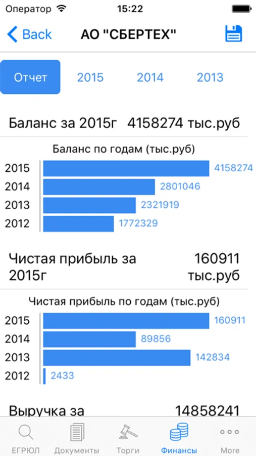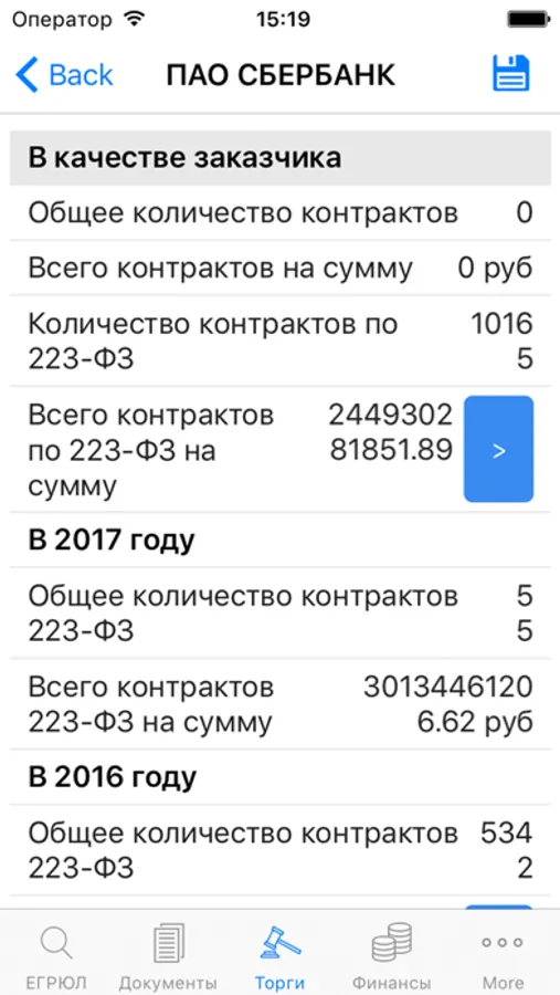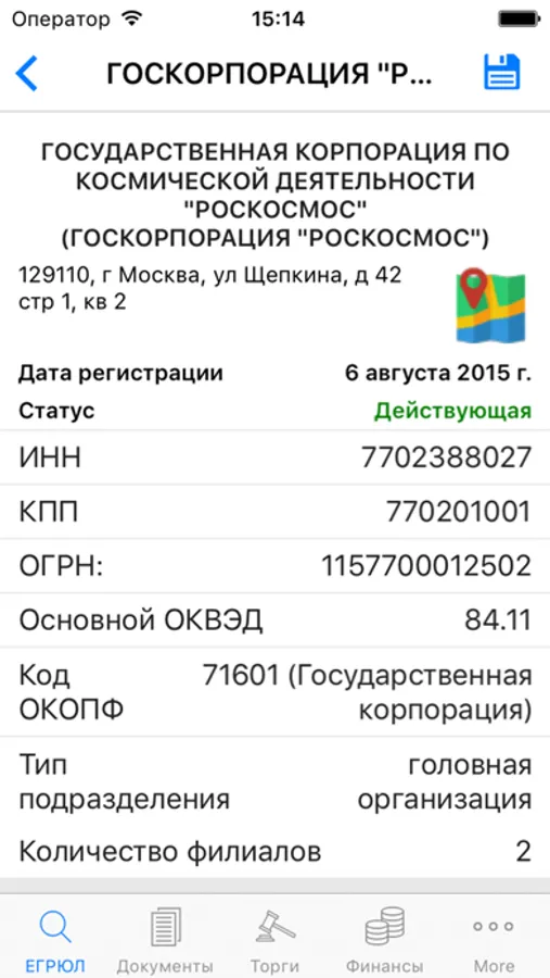 Кроме того, приложение позволяет создать заявление для получения выписки или копий документов из налогового органа или даже увидеть участвовало ли юридическое лицо в тендерах.