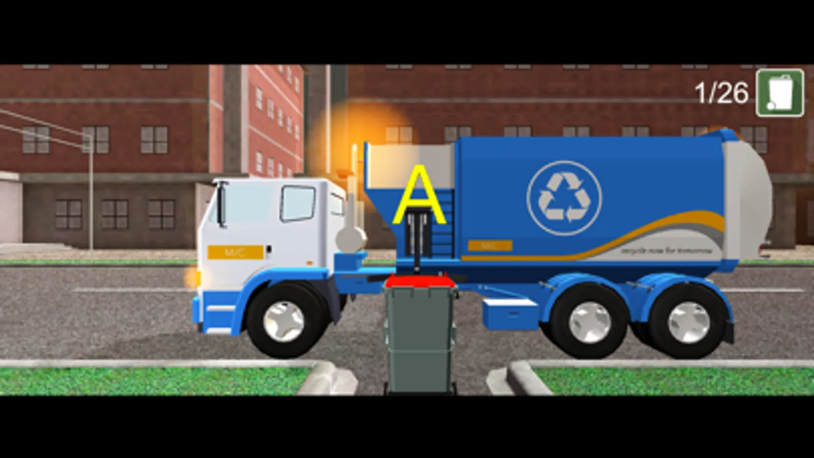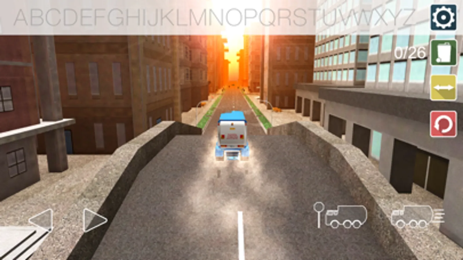 A fun way to learn by collecting all the letters of the alphabet with a garbage truck.