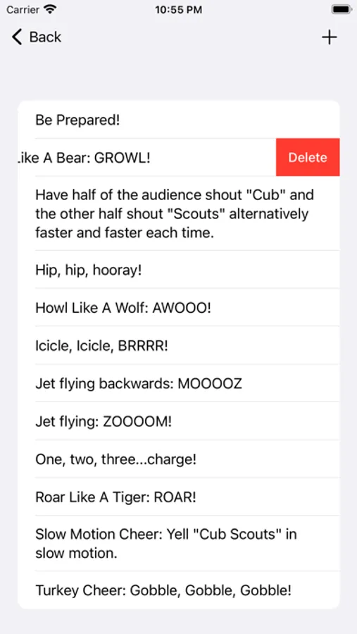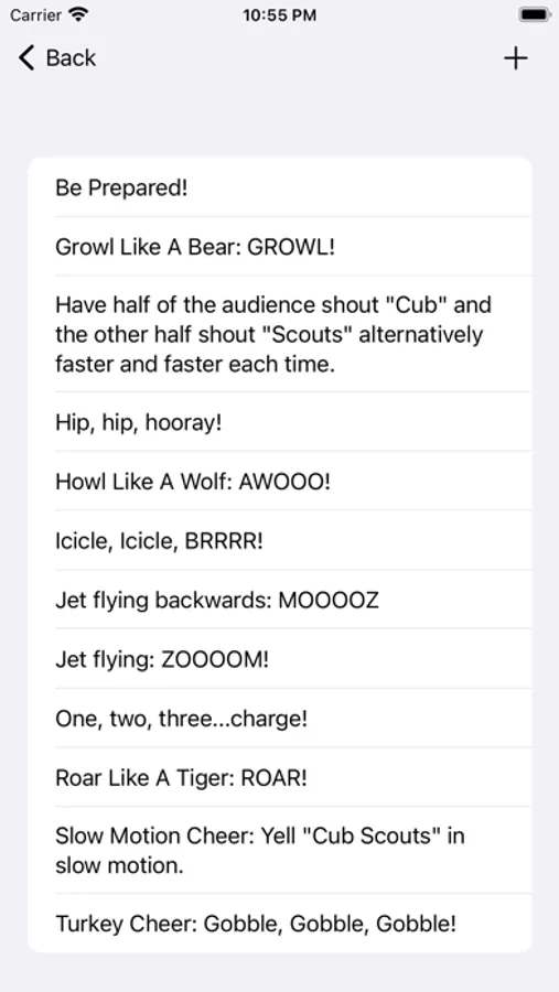 It starts users out with some fun cheers, but it also allows users to add their own cheers so that they have a growing library of cheers for their scouting events.