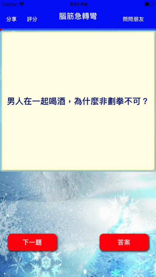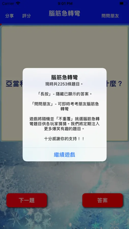 玩家使用「問問朋友」功能,考考朋友們的腦筋急轉彎能力。