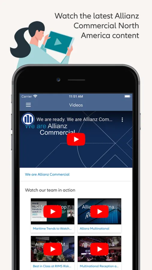 The Allianz Commercial App is a useful resource for broker partners and clients in North America. It features company information, product sheets and risk appetites for every line of business and service, and contact information for underwriters and other key members of the organization. Even more, stay up to date with the latest financial results and watch video content from the palm of your hand.