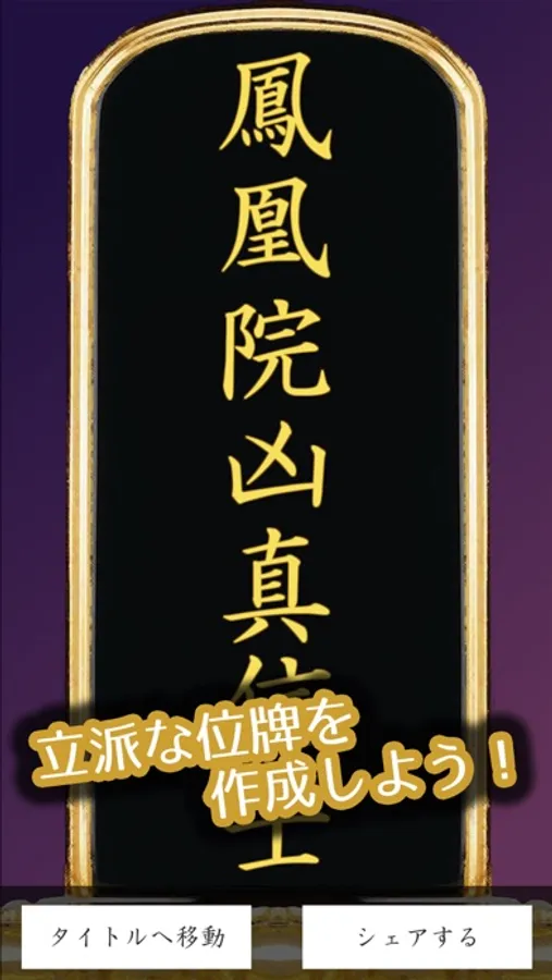 戒名と呼ばれるものを作り、位牌に載せて世界中に発信できるアプリです。