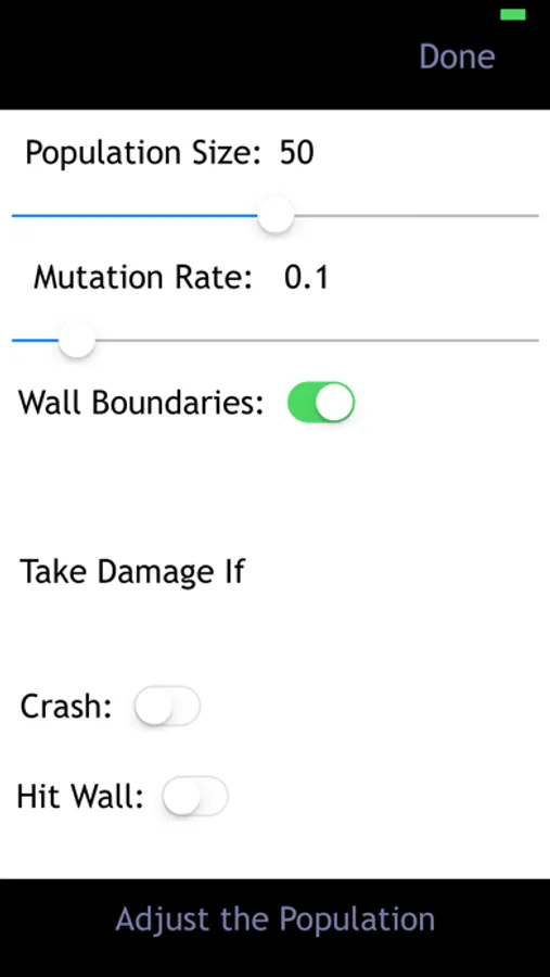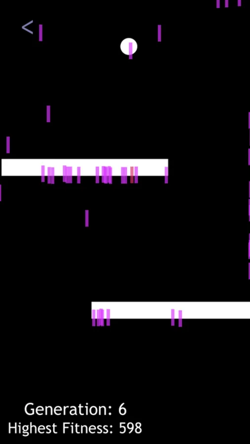 This app is supposed to demonstrate machine learning and how it works through natural selection. You can create levels for the computer to solve and adjust the population to fit the level or ‘environment’ better. The computer will try to solve the level using a form of machine learning called a Genetic Algorithm (which is based on evolution). If everything goes according to plan the computer will be able to figure out the level over a certain amount of generations.