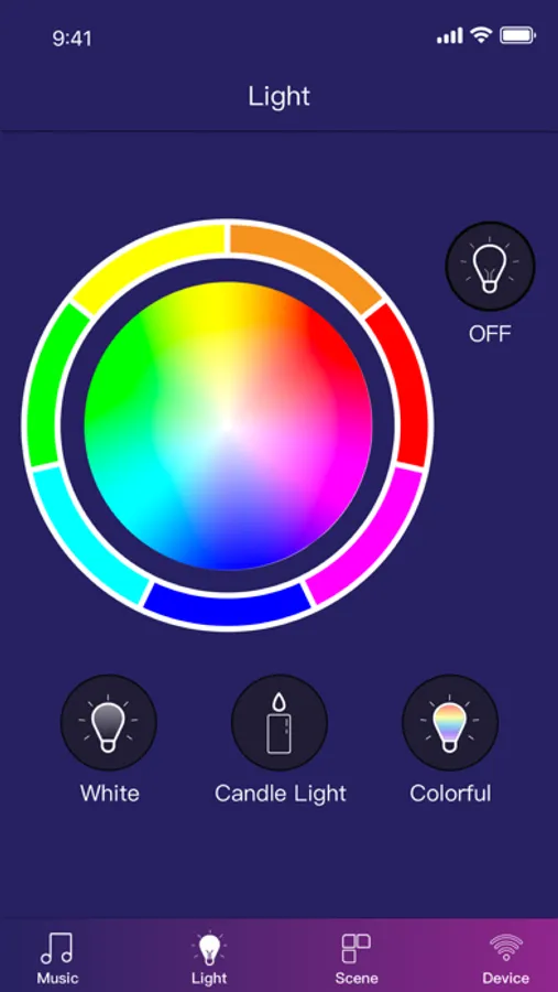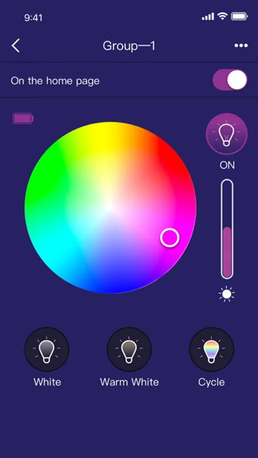 通过该应用,一个App可以控制多个户外灯等设备,可实现灯的开关,颜色调整,亮度控制等功能。
