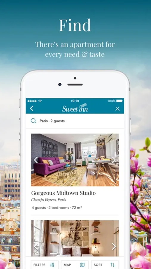 Travel in style with the all-new Sweet Inn app. Enjoy a hassle-free stay in one of our hundreds of made-for-vacation apartments. Customize your experience with our Extra Sweet Services. Discover the city around you with our Local Tips. Chat directly with your Guest Relations Representative for anything and everything you need or want.