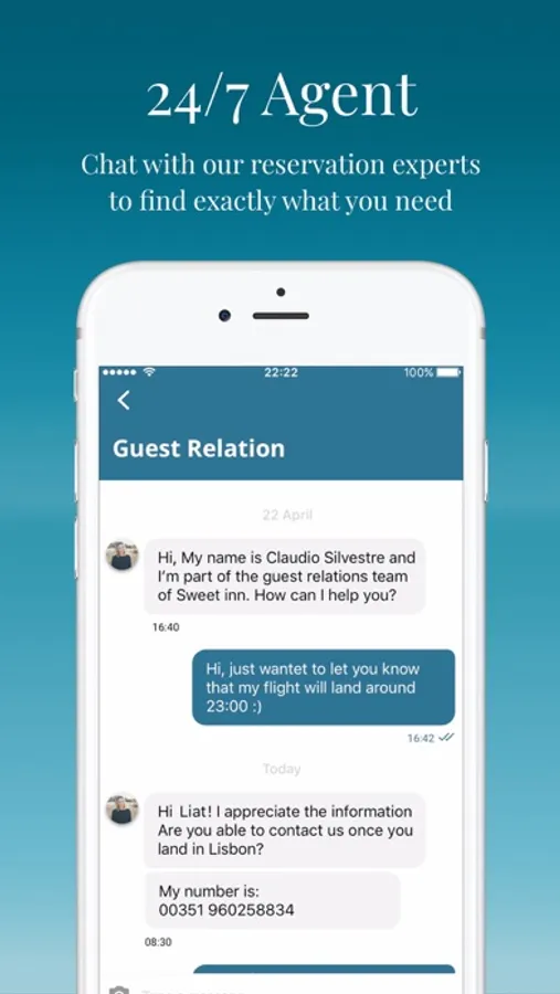 Our Guest Relations team is always available to live chat through the app and assist you with any request and need. Think of the Sweet Inn app as your personal concierge. Need to order a cab? Want to know where to have dinner? Out of fresh towels? Tap and ask and your wish will be fulfilled.