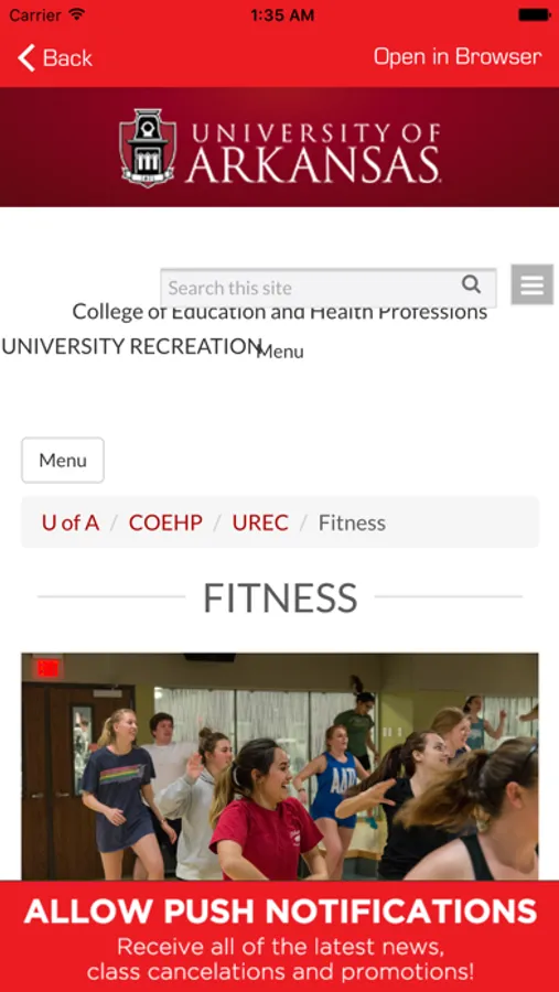 Keep up to date with all that is going on at UREC. Register for group fitness classes, intramural sports, and UREC Outdoors adventure trips, view detailed program information and facility hours, and much more.