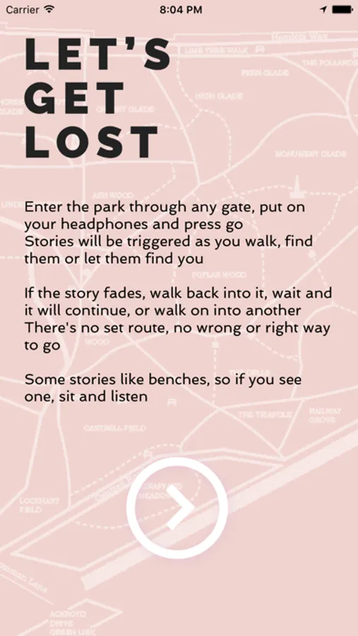 The app triggers stories using GPS, letting you walk in and out of the audio as you wander. There is no set route, no wrong or right way to go. Simply press go, pop your phone in your pocket and leave it there.