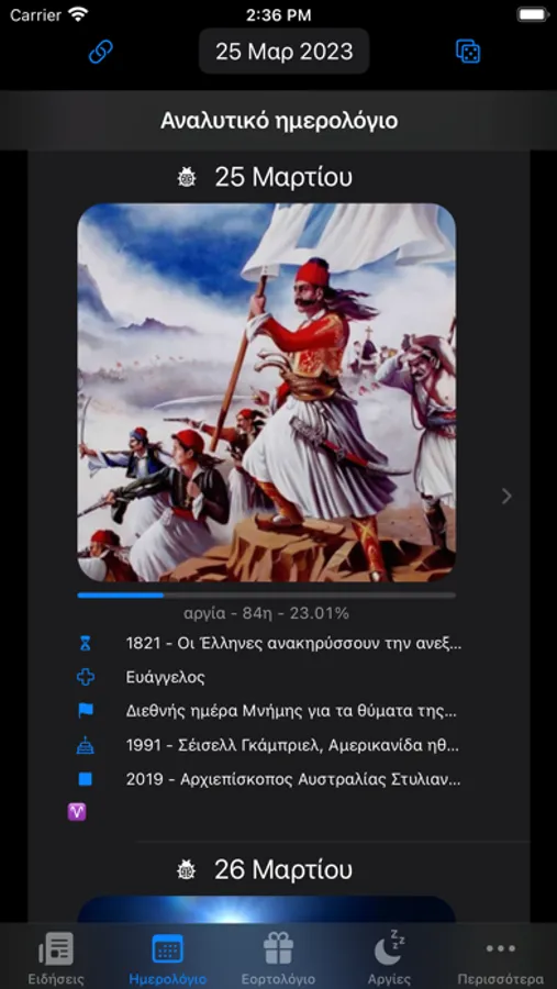 - Λήψη καθημερινών ειδοποιήσεων για γιορτές και σημαντικά γεγονότα