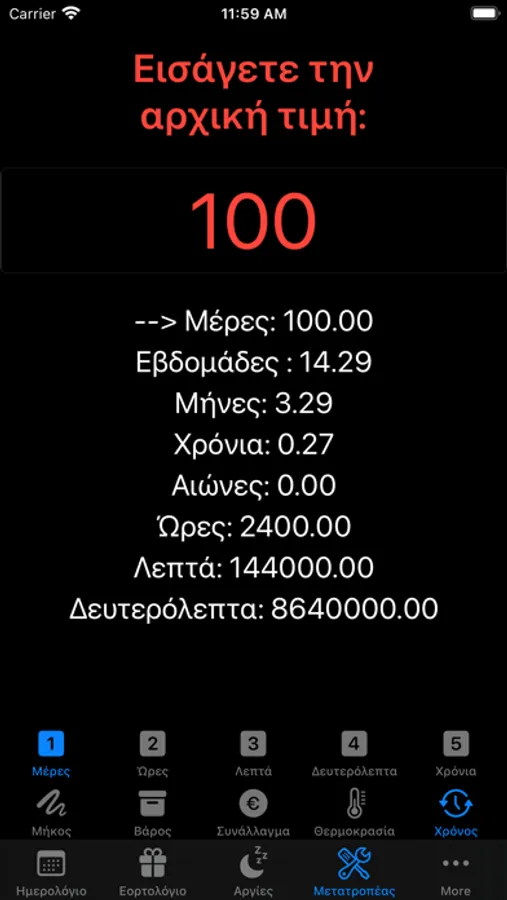 - Χρόνος (μέρες, εβδομάδες, μήνες, χρόνια, αιώνες, λεπτά, δευτερόλεπτα)
