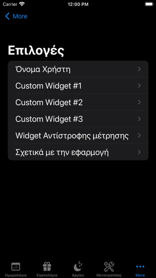- 11 Widgets για το iPhone και το iPad (εορτάζοντες, σοφά ρητά, παροιμίες, δακτύλιος, ησυχία, εικόνα της ημέρας, πόσες μέρες για τα Χριστούγεννα & Πάσχα, υπόλοιπο του έτους, προσωπικά κείμενα, αντίστροφη μέτρηση μέχρι μια επιλεγμένη ημερομηνία)