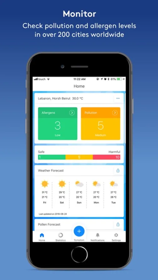 + Get local pollen, pollution, air quality alerts, forecast and know exactly what to do about them.
