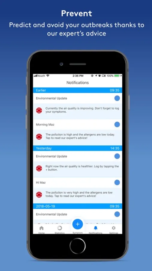 With our simple, intuitive interface, you can track your daily allergy symptoms, monitor potential allergens and receive pollen count and air pollution alerts in your local area. Advice from experts then helps you learn how to combat and eliminate the sources of your allergy and asthma symptoms such as hay fever, runny nose, headache and shortness of breath.