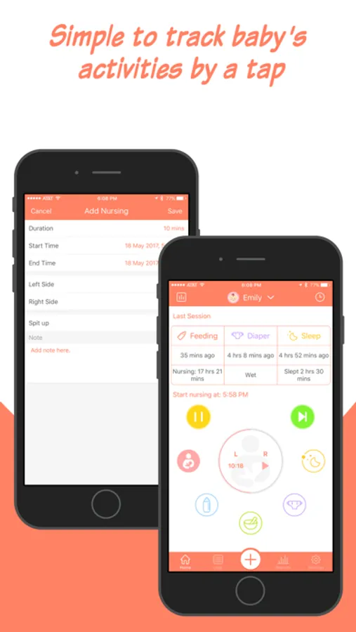Keep you out of the mess of caring baby, know clearly about the quantity and time of baby has had, time of baby’s diapers and the sleep time and duration. Also you can find baby’s unusual activity easily by keeping and checking its logs.