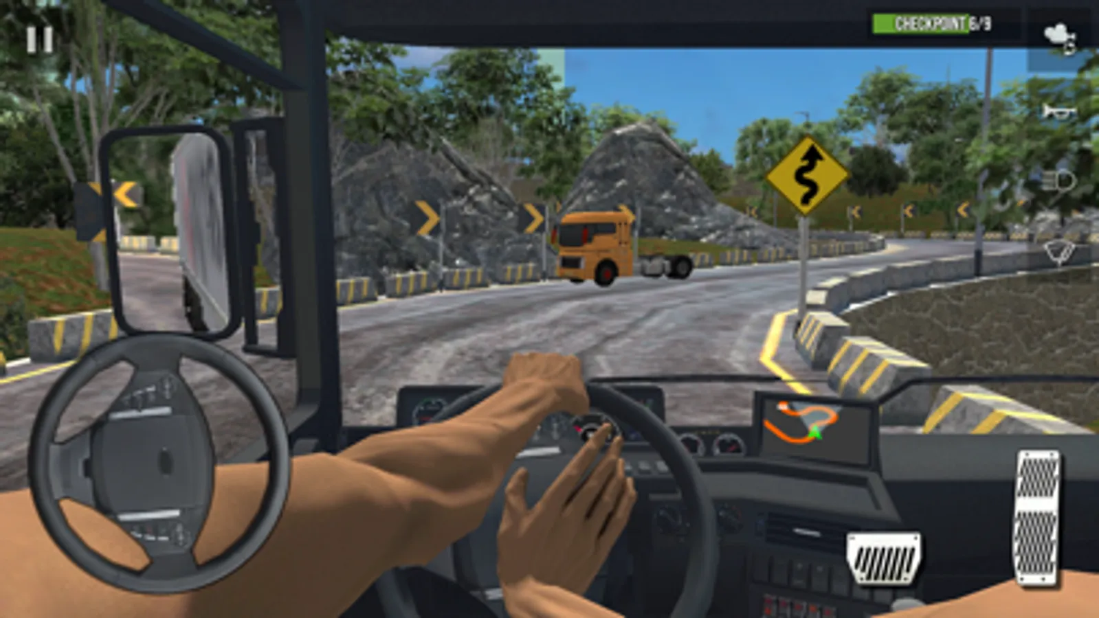 Car inside view, detailed truck console, try the best truck simulation with realistic driving and navigation features in the store now. Reach goal without hitting cars in challenging ways. Show your abilities in ramp and winding roads.